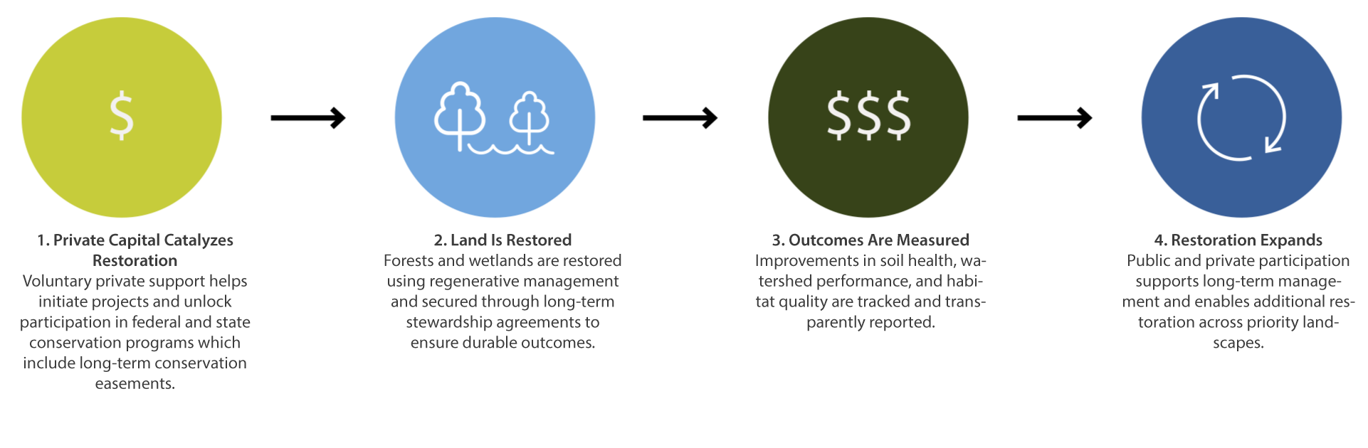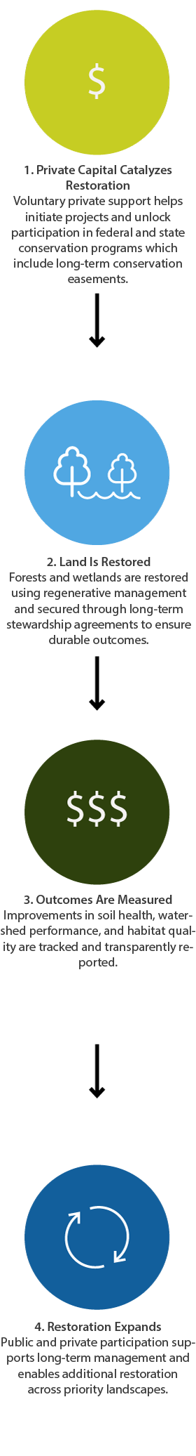 Restore the Earth’s innovative funding mechanism leverages private capital to access matching public funding for maximum impact.
